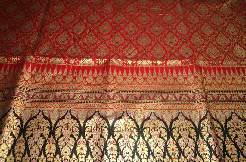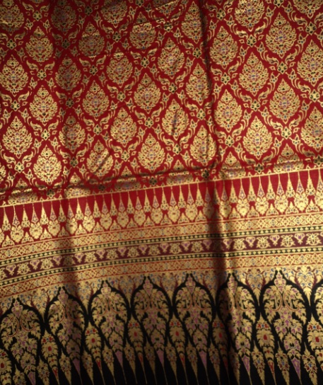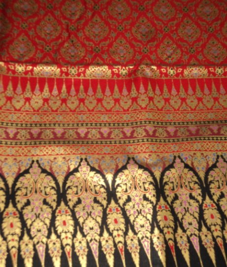 ***ผ้าพิมพ์ทองลายไทย สีแดงลายทอง ยาว 2เมตร**